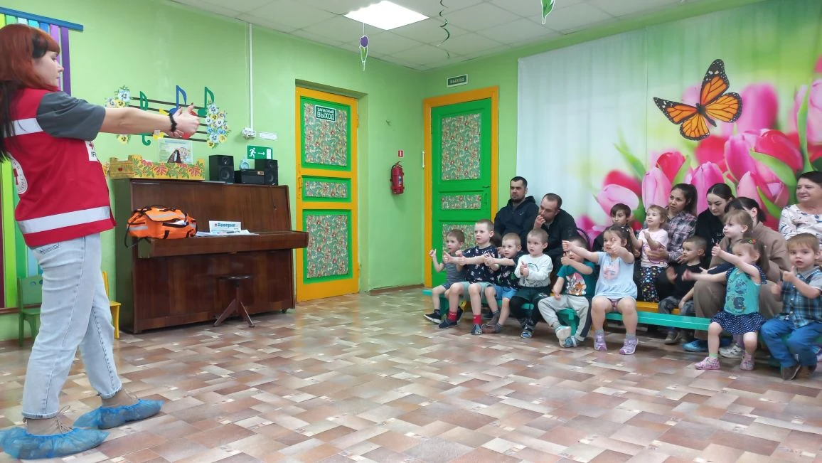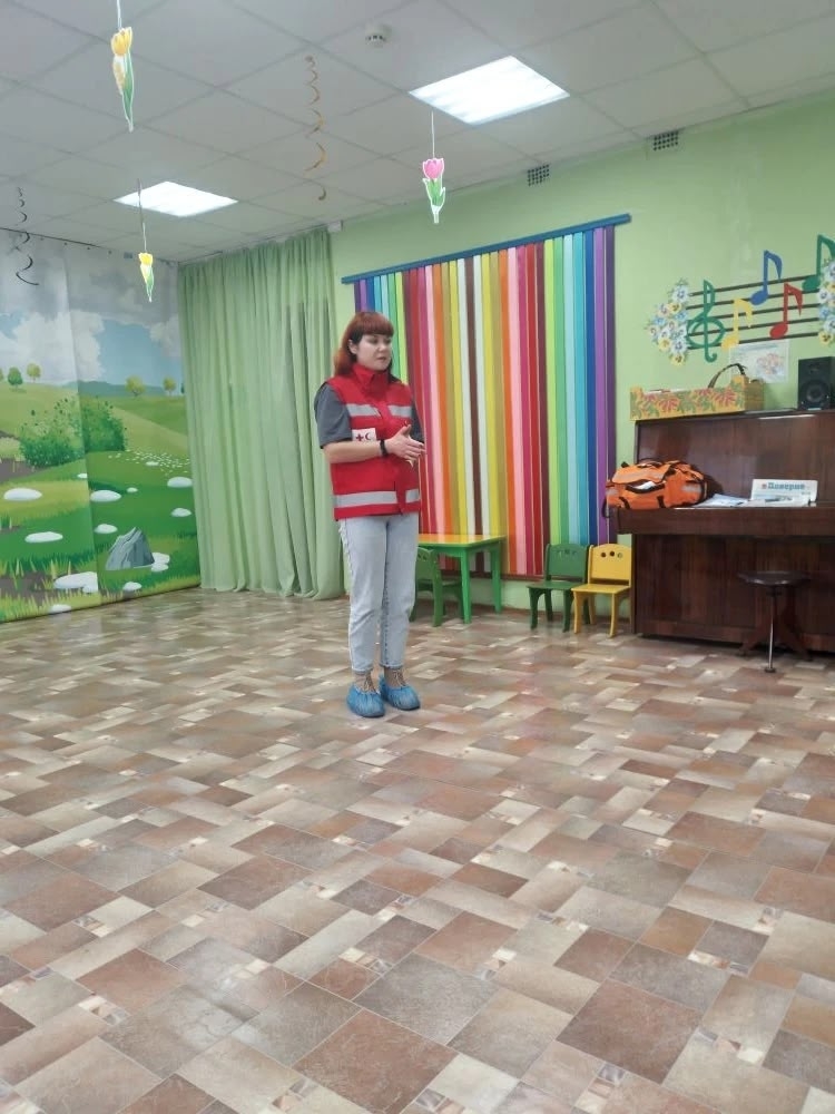 Во второй младшей группе "Колобок" – гость группы – Юлия Аркадьевна Ростовцева-Кащеева, инструктор Российского Красного креста по оказанию первой помощи.